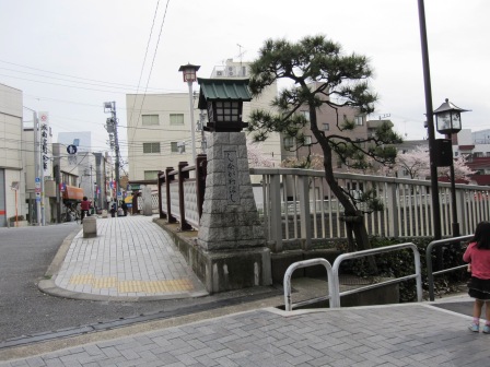 | 橋の西側に荏原神社がある。 品川神社は「北の天王様」といわれ、南品川の鎮守である荏原神社は「南の天王様」と言われたという。 和同2年(709)に藤原伊勢人が丹生川上神社(奈良県吉野)の分霊を迎えたのが始まりという。 康平5年(1062)源頼義・義家の父子は、奥州安倍貞任・宗任征伐に際し荏原神社に参詣し戦勝を祈願したという。 |