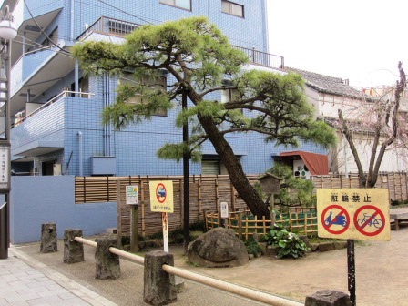 ・・・・お尋ねものの平井権八に幡隋院長兵衛が声をかける場面で、長兵衛は駿河屋の提灯を持っている。 この付近には、3番目の一里塚があったとされる。元禄3年(1690)の東海道分間絵図に記録されている。 |