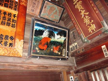 天正年間(1573-93)の創建という。この辺りは海で、黄金に輝く像が流れつき村人は畏れて沖へ3度流したが元の場所に戻ってきたので、社を建ててこの像を祀ったという。寄来明神と称したが、のち大森神社になったという。 |