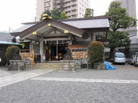 | 鈴ヶ森刑場を過ぎて第一京浜国道と合流し当分の間交通量の多い道路わきを歩くことになる。 大森海岸駅前の交差点を過ぎると、右側に磐井神社がある。 |