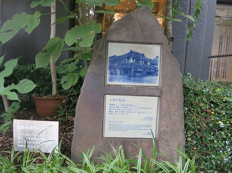 石碑の向かいに立つ建物は、「小津和紙」のビルで伊勢商人 小津清左衛門は承応2年(1653)の創業という。 その資料館の入り口にある和紙の原料の木が植えられている。 <コウゾ> <ミツマタ> ![]() ![]() |