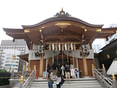 新大橋通りとの交差点、近代的な造りで、堂々とした威容を誇示しているような水天宮が現れる。。 文政元年(1818)久留米藩9代7藩主有馬頼徳が江戸・三田赤羽の江戸上屋敷に久留米の水天宮を分霊したのが始まりという。江戸でも信仰者が多く、藩邸内での参拝が特別に解放されたという。 ![]() 明治5年(1872)に 有馬家の中屋敷のあった現在地に移転した。 |