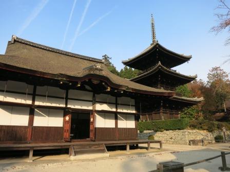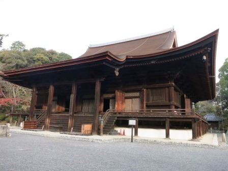大門から金堂に行く道の右側にある簡素な建物で、中世寺院の食堂(じきどう)の様式を伝える。 秀吉による没収ののち、天正年間(16世紀末)造営の御所清涼殿を移築したという伝えもあるが、説明板では、室町時代初期の建築と推定されるという。 |