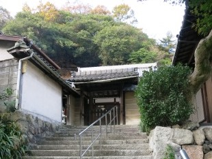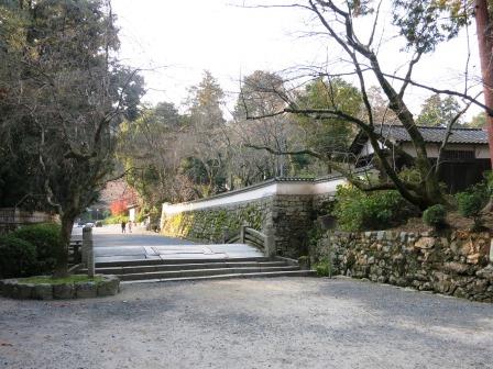間もなく閑栖寺があり、山門前と、境内に車石・車道の説明とその復元されたものがある。(前述) 山門はで元文3年(1738)に修復された、「太鼓櫓楼門」という珍しいものである。 |