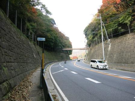 少し先で京阪線の踏切を渡ると安養寺がある。貞観4年(862)智証大師が園城寺別院として創建したという。![]() 山門前には「逢坂」を説明している石柱がある。それによると「日本書紀はによれば、神功皇后の将軍。武内宿禰(すくね)がこの地で忍熊王とぱったりと出会ったことに由来する、と伝えられている」という。 その先で右に入る道の奥に「逢坂山ずい道東口」がある。明治13年(1880)竣工、大正10年(1921)まで東海道線下りとして使われたという。 ![]() すぐ先で国道1号線が合流してくる。 日本橋からの距離 486kmを示している。 |