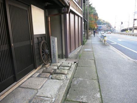 蹴上浄水場の脇を下り、蹴上の交差点・地下鉄の駅までくると、日曜日で南禅寺と紅葉の観光客を数多くみかけるようになった。 ここからまっすぐ西に進み三条大橋に至る。 この付近の町の名前には粟田口・・・という地名がついており、近世以前には三条大橋との間に関所が設けられていたという。 三条大橋からこのあたりにかけては、東海道・中山道へ出入口・・・「粟田口・または三条口」として、京都七口のひとつに数えられていた。 |