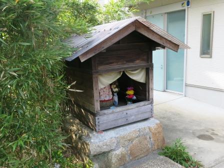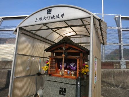 国道がある為、厳重に守られた上横木町地蔵尊 |