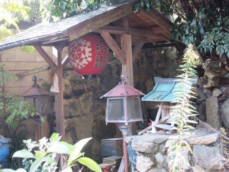 石段の先に広い境内がひろがり、大きな威容をほこる金堂がある。 秀吉の北政所が慶長4年(1599)に再建した。 (秀吉により没収された本尊や宝物、堂宇は他に移築されたが、もとの金堂は比叡山延暦寺の釈迦堂として現存しているという。秀吉は死の直前三井寺の再興を許可したという) <堂前灯籠-無名指灯籠> ![]() 天智天皇が自らの左薬指(無名指)を切り込ん灯籠の下に納めたという。 ![]() 金堂の西側に接して「閼伽井屋」(あかいや)という小さな堂がある。その中に三井寺の由来となった霊泉がわいている。 |