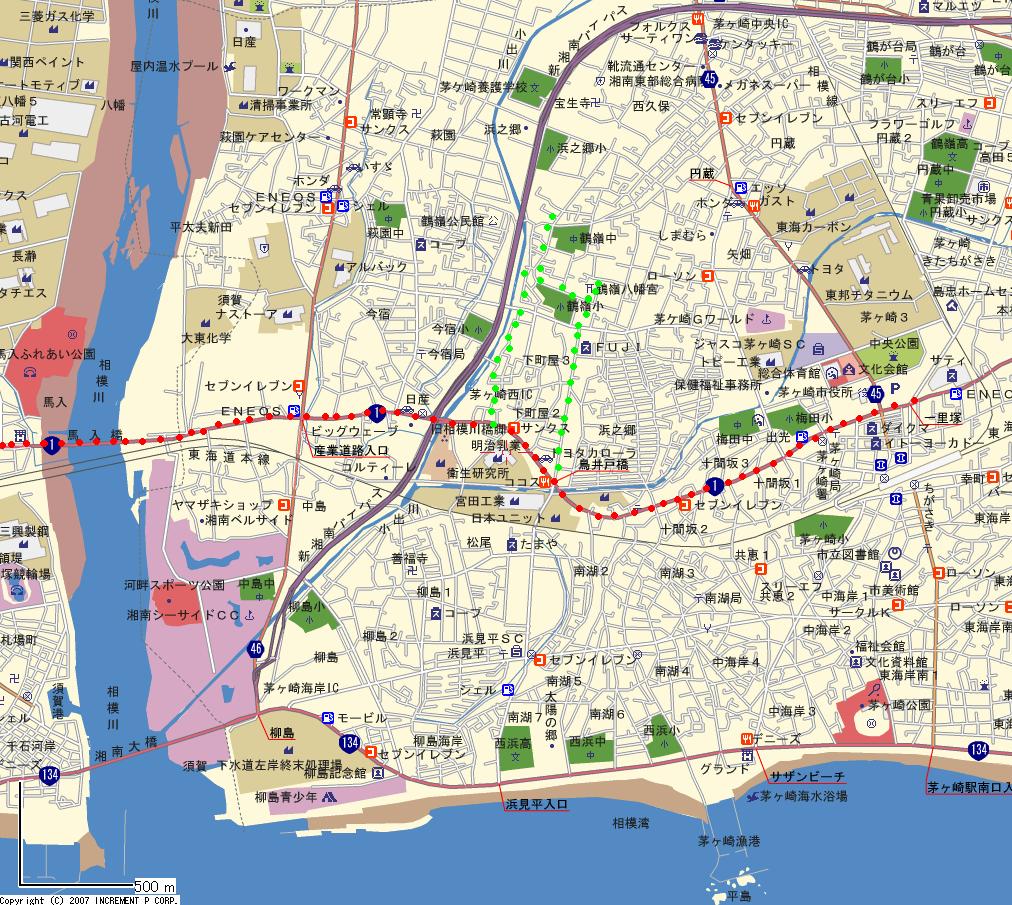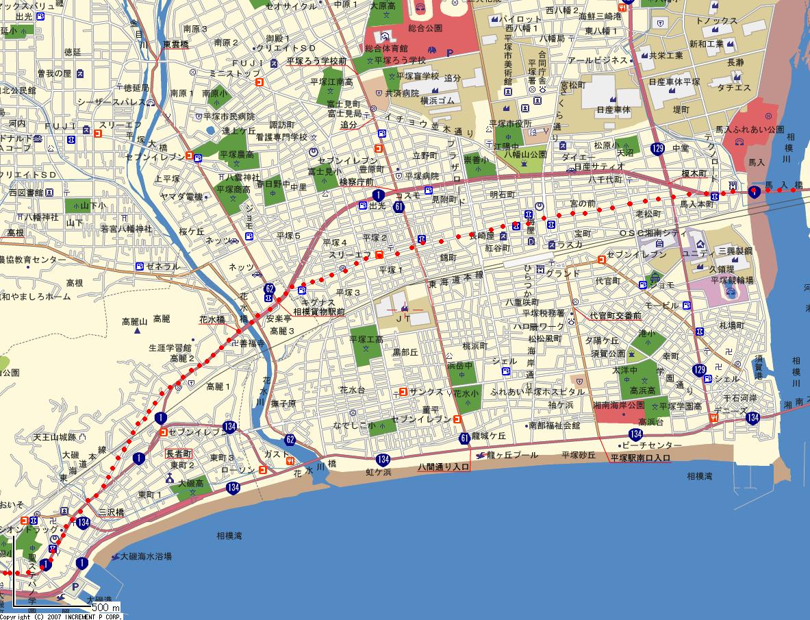 | 茅ヶ崎−大磯 地図→ @茅ヶ崎−平塚 A平塚−大磯 |