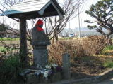 八幡宮から、北に向かって約500mの室生寺を探して歩きまわったが、まだ住宅が増えつつある段階で、畑が多く残りのどかな雰囲気が漂っている。 室生寺の屋根がみえる直前で、細い道の脇に北向き地蔵が建っていた。 |
