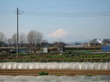 道が大きく右にカーブしている先に、千の川のかかる鳥井戸橋がある。渡った左側に石碑が建っている。説明板によれば、『東海道のうち、左手に富士山の見える場所は、ここと静岡県-吉原の二箇所が有名で、南湖の左富士として茅ヶ崎名所のひとつとなっている。』 この日は、午前中で天気もよく、きれいに富士山がみえた。 |