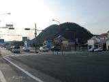 旧道に戻るとすぐに、新東海道と合流する。 京方見附の跡と説明板がある。 京方見附跡からみた高麗山 |