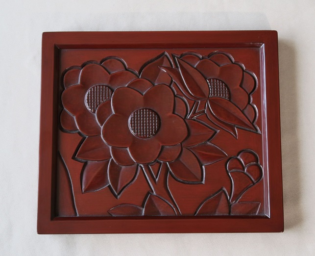 伝統的な 鎌倉彫の模様、大きいサイズのお盆