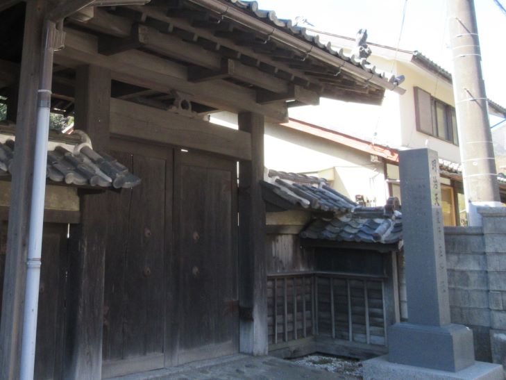 すぐ先に本陣跡がある。 黒野田宿の西のはずれで、右側に古い門と 明治天皇行在所阯の石柱がある。 |
