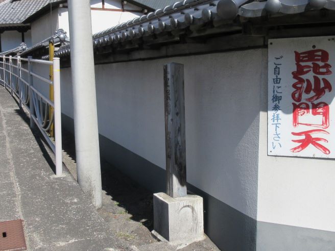 笹子川を渡ると右側に普明院がある。手前にある阿弥陀海道宿にあった行基作の阿弥陀像をここに移して本尊としたという。 <一里塚跡> ![]() 門の左側の壁に掲げられた毘沙門天の看板の近くにに一里塚跡の標柱が立っている。 日本橋から25里という。 |