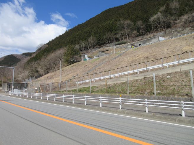 この先は笹子川に沿って 緩やかな野反坂となる。右側の土手の上には、天井板崩落事故があった中央道の笹子トンネルの入口が見える。 小さな集落を通り過ぎていくが、道路脇に文字庚申塔やレンガ造りの社があり、街道の面影を残している。 ![]() |