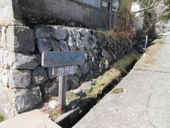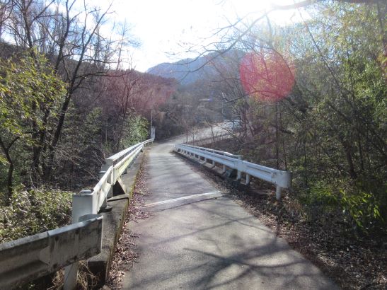 旧街道は、まもなく県道から左に向かって分岐し、坂道を経て笹子沢川を渡る。 |