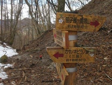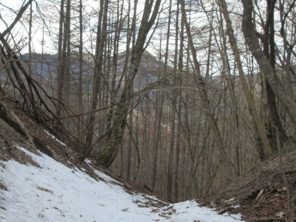 まだ登り初めて間もないところで、、数日前の雪が依然として残っており、倒木が道を塞いたり、この先が思いやられた。![]() ![]() |