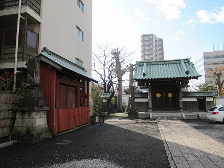 青柳は、その昔多摩川南岸の青柳島にあったが、寛文11年(1671)の大洪水により流失したため、この地に移住し、青柳村を開拓したという。![]() 『くにたちNAVI』 のHPによると、「青柳稲荷神社は宝暦5年(1755)の創建で、明治22年(1889)の町村合併前は、青柳村の村社であった。天満宮に次ぐ古い神社」という。 本殿は東にむいている。 |