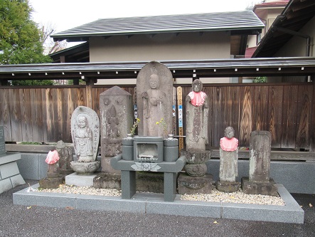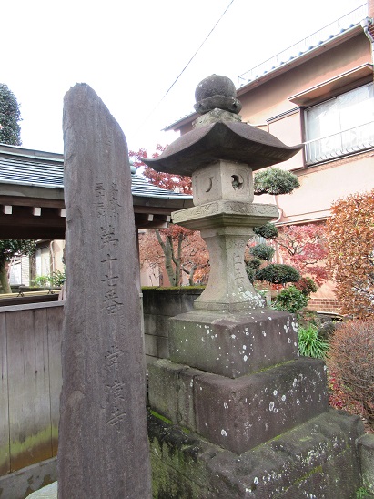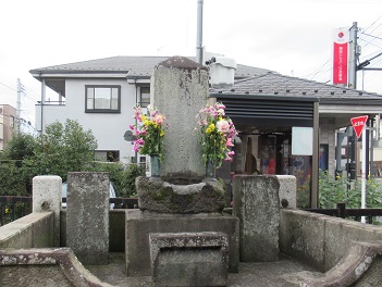 府中市役所前交差点には、高札場が当時のまま残され、札の辻と呼ばれた。北側には安政年間(1855~60)に建てられた中久本店がある。その隣が問屋場であった。甲州街道、川越街道および相州街道が交差する府中宿の中心地として栄えた。 その先に番場宿の由来碑があるが、少し北側にある長福寺に足を延ばして、貞治(1362~67)や文安(1444~49)の古碑があったというので、期待して訪れたが・・。、 |