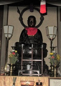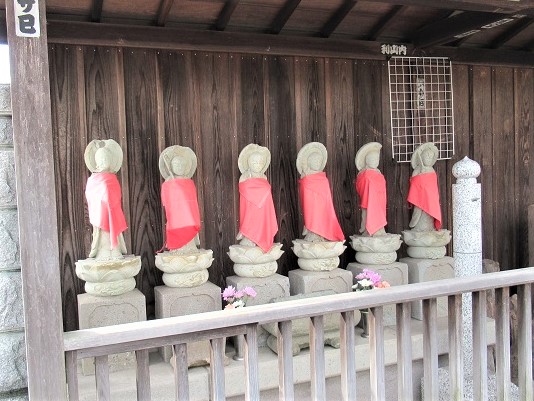 坂の先がJR中央線でさえぎられている。 ここが、日野宿の西はずれにあたり、西の地蔵ともいわれているという。 地蔵堂の前に、地蔵の石像が並んでいる。元文2年(1737)の建立という。 堂の中には 延命地蔵尊が納められている。正徳3年(1713)に造られたもので、高さ120cmの青銅の座像。 格子窓からとった撮ったもので、すでに周囲が薄暗くなっていたこともあり、黒く輝いている立派な仏像に見えた。 |