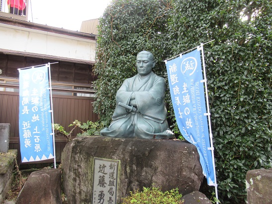 応永年間(1394~1428)創建で、江戸初期から大黒天が祀られている。 仁王門は、宝永年間)1704~10)に建築されたといい、楼上には享保2年(1717)政策の梵鐘が吊るされている。、 門の前に 近藤勇の胸像がある。 上上原村(今の調布飛行北)で生まれ、新選組で活躍、甲陽鎮撫隊を結成して甲府に向かう途中、ここ西光寺で休憩した。![]() 中央高速のガード下を進む。 飛田給駅入口を過ぎると左手に薬師堂がある。 |
