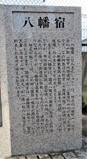 東府中駅を過ぎると大國魂神社の末社 国府八幡宮の参道が南に向かっている。![]() ここに八幡宿の地名由来碑がたっている。 八幡宿は、国府八幡宮の周囲に発達した村落という。 甲州街道が整備されたのに伴って街道筋に移動してきた農業を中心とした村で、宿場町ではない。 500mほど先で、八幡宿交差点を過ぎる。 府中宿はこの辺りから始まり、宿の最初の町-新宿(しんしゅく)に入る。 |