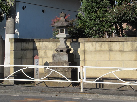 矢川駅入口の交差点の手前に常夜燈が建つ。 「秋葉大権現」と刻まれ、寛政6年(1794)の建立。 元々は甲州街道の北側にあったものが、道路改修時に移されたといい、立川市内に残る三つの常夜燈の一つという。 |