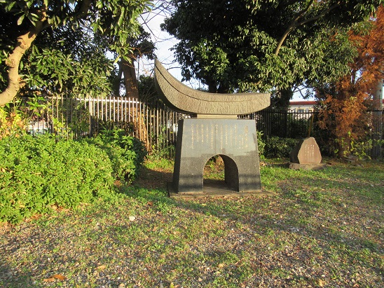 下水処理場の脇を通った先の左側に渡し船かたどった石碑がある。![]() 土手に上ったところから見た 多摩川の景色。→ 奥に見えるのが、日野橋。 |
