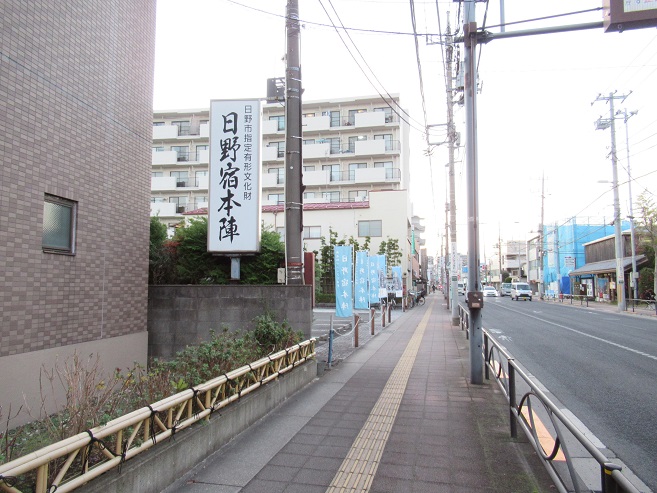 | <川崎街道入口> <本陣手前から西の方向> ![]() 高幡不動への道標がある 宿の規模は、東西約1km, 本陣 1、脇本陣 1、旅籠 20、 家数423軒 |