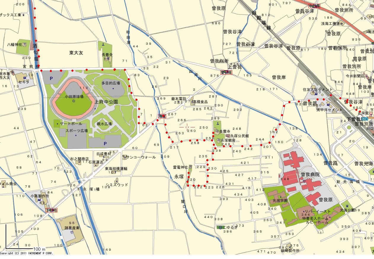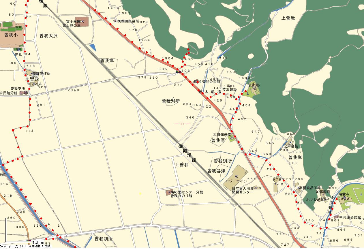 下曽我の散策 (3) 下曽我から上曽我へ 地図 ①下曽我駅-瑞雲寺 ②瑞雲寺-風外窟