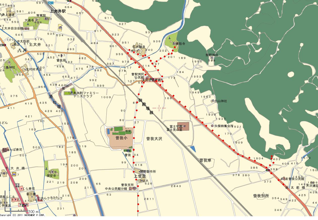 | 下曽我から北の方面の散策ぬ出かけた。御殿場線の下曽我の次に駅ー上大井の近くまでが今日の予定で、日本酒の石井醸造を見て、再び下曽我にもどる。 | |||
