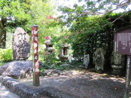 | バス道路の反対側から北に100mほど入った所に、竺土寺と石造物群とかかれた標柱が立っており、自然石に刻印した石塔が立っている。右に行くと、竺土寺である。明徳2年(1391)了庵の開基という。