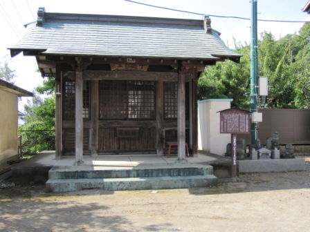 | 川沿いの道を下り、十字路を西に約400mほど進むと 「大正13年(1924)に再建された。本尊の大日如来は両手で智拳印を結ぶので、金剛界の中心に位置することが知られるが、この地方の大日信仰の詳細は不明という。」の解説がある。 |