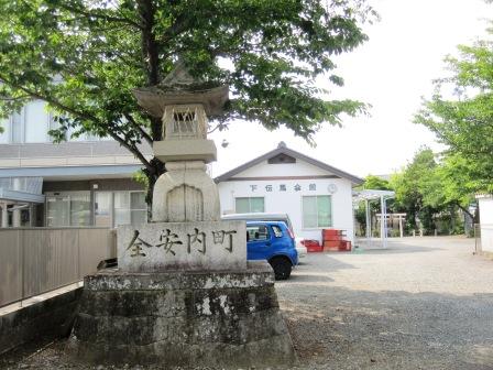 左奥の佐護神社を過ぎてから、右側の駐車場の隅にに高札場跡の石柱がある。 |