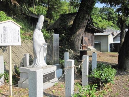 境内には白拍子姿の千手の石像と謡曲「千手」の説明板がある。 「一の谷の戦いで捕まった平重衡を慰めるように源頼朝は白拍子 千手の前を遣わすが、その重衡と千手の前の物語を主題とした謡曲「千手」の生誕の地と伝えられる」という。 ここは、手越長者の館跡と推定されている。 長者には少将と千手という2人の娘がいて、姉の少将については、裾野の巻狩りの時の工藤祐経の接待役で愛人となったが、曽我兄弟の仇討のあと、十郎の愛人虎御前が尼になるとともに、出家したという。 |