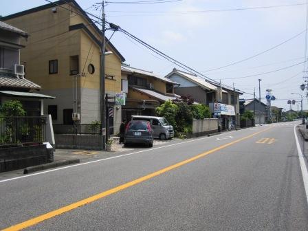 道は、国道1号線を歩道橋で渡り、国道の右側を西に進む。 |