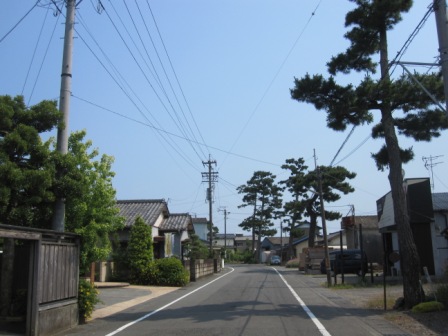 | ここからは広い県道で、歩道をひたすら南に向けて歩く。 途中松並木が続くが、古い松は所々である。国道一号線の藤枝バイパスの下をくぐると、「東海道横内」の案内表示がある。 その先に『従是西巌村領 』と書かれた傍示杭を復元したものが立っている。 岩村藩は、松平能登守が美濃国岩村城を居城として3万石の領地を持つており、駿河国の15ヶ村に飛び領地があったという。 |