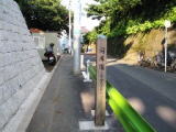 鎌倉下ノ道(散策路)は、環状8号線を横切って、しばらくこの環八と平行して進む。 「六郷用水の跡」の道標が立っている付近の手前を左折すると、散策路と平行して進む道がありそこに小さな祠があり、道祖神が祀られている。 |