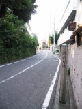 この坂の右側の丘で、古墳時代~奈良時代にかけての横穴墓の調査がおこなわれていた。 |