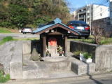 赤門から馬場花木園に向かう途中のテニスガーデンの道路脇に、小さなお堂が建っている。自然石に彫られた庚申搭のようである。 |