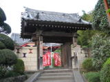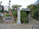 せせらぎ緑道から離れ、教会の脇を広い道を右折する。カーブしたところに、格式のある長屋門が建っている。 石碑の説明によれば、「赤門-江戸時代の名主屋敷の長屋門で、幕府より紅がら塗りを許された。安政年間(1855年)に建てられ、東寺尾、北寺尾、西寺尾、馬場四ヶ村総代名主当時の建造物」という。 |