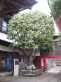 本堂左にある、椿の木は、「源平五色の椿」 (げんぺいごしきのつばき)と言い、「かながわの名木百選」に選定されている。 説明文によれば、「樹齢は、推定600年と伝えられ、樹の種類は「五色椿」、接ぎ木ではなく、一本の幹から「赤・白・ピンク・しぼり(赤・白が点散)・ぼかし(にじんだ色)」の五色(ごしき)の花が咲き分ける。開花時期は3月中旬より、5月中旬ごろまで毎日咲き替わり、特に4月上旬が見ごろ」という。 |
