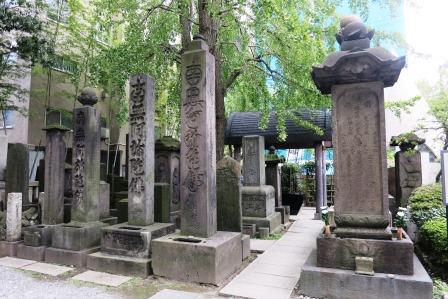 境内左奥には、延宝3年(1675)に建立された明暦大火の供養塔や石造海南供養碑などが多く建っている。 さらに奥には、鼠小僧供養墓が整備されている。正面には 「天保2年8月18日 俗名 中村次郎吉之墓 教覚速善居士」と刻まれており、裏には「大正15年12月15日」とある。 鼠小僧は寛政9年(1797)生まれの実在の盗賊であり、天保3年(1832)に処刑されている。 墓石を削り財布に入れておくと金回りが良くなるということで、前にある大きな石は数年毎に建て替えられているという。 |