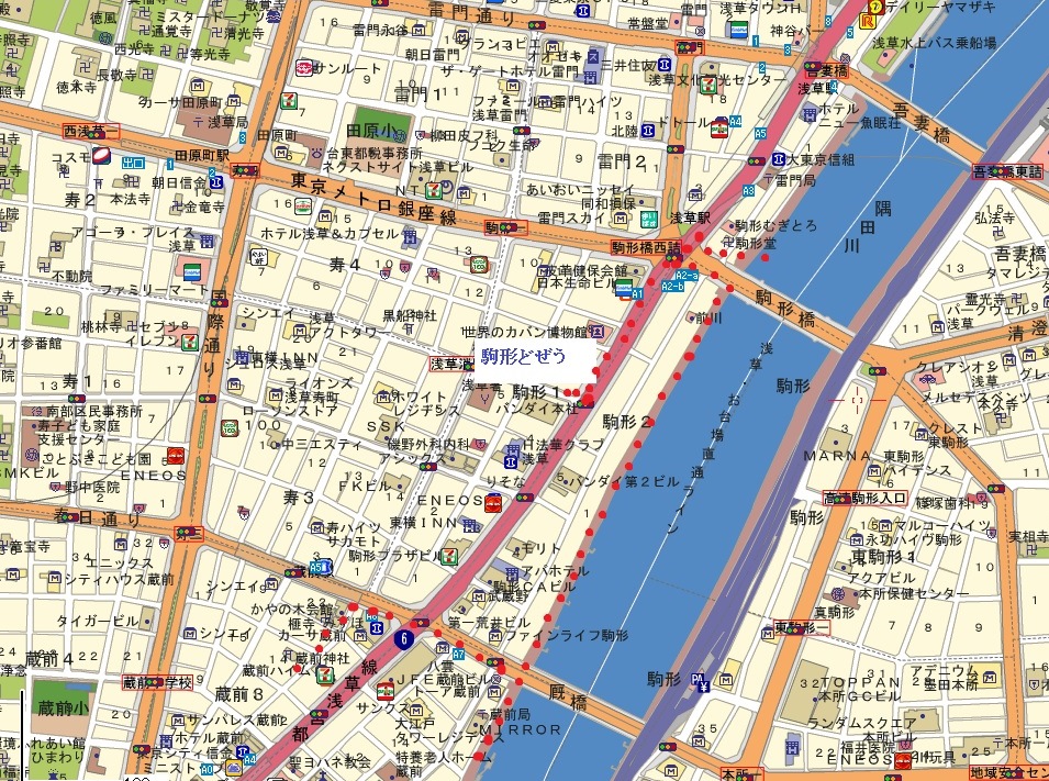 | <東京下町の散策と食事を楽しむ> (5) 両国から駒形へ 駒形どぜう 2016年10月13日 地図→両国-浅草橋 浅草橋-蔵前 蔵前-駒形 |
