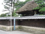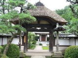美しい形の茅葺の山門と、境内の庭が印象的である。 |