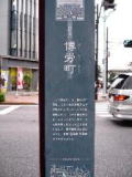 そこから4ブロック行ったところで、新しく道路が整備されている材木町通りとなる。このあとの報恩時のわきにある市の『文化財表示板』によれば、江戸街道であった 。材木町通りとの交差点を南に向かうと蓬莱大黒通りとなる。 |