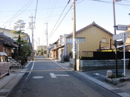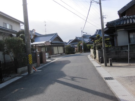 地福寺の先で県道を横切り、左側に田んぼも広がる昔ながらの道を進む。 JR関西本線で途切れるが、すぐ北の踏切を超えて西に進むと、先ほど横切った県道に合流する。 ![]() |