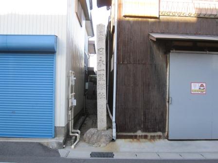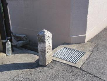 落ち着いた家並みを500m程進むと右側の角に道標が立っている。「ひろせ道」とあり、大正時代のものという。 北にある広瀬町には奈良時代の伊勢国府の跡が発掘されている。 長者屋敷跡と呼ばれる場所で、鈴鹿関との関係で軍団機能を備えた政庁跡や役所関係の遺構が多くあるという。 |
