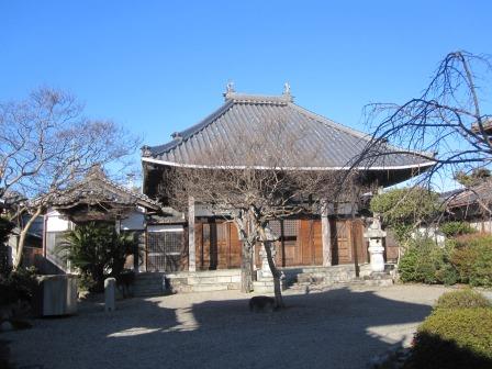 路地を右に入った所にある観音寺は江戸時代に黄檗宗の寺院になるまでは詳細不明という。![]() 現在の本堂は、文化3年(1806)の再建とされ、四脚門の山門は、寛政12年(1800)の築といい、山門の屋根の両端にはには黄檗宗特有の「魔伽藍(マカラ)」を挙げている。 |